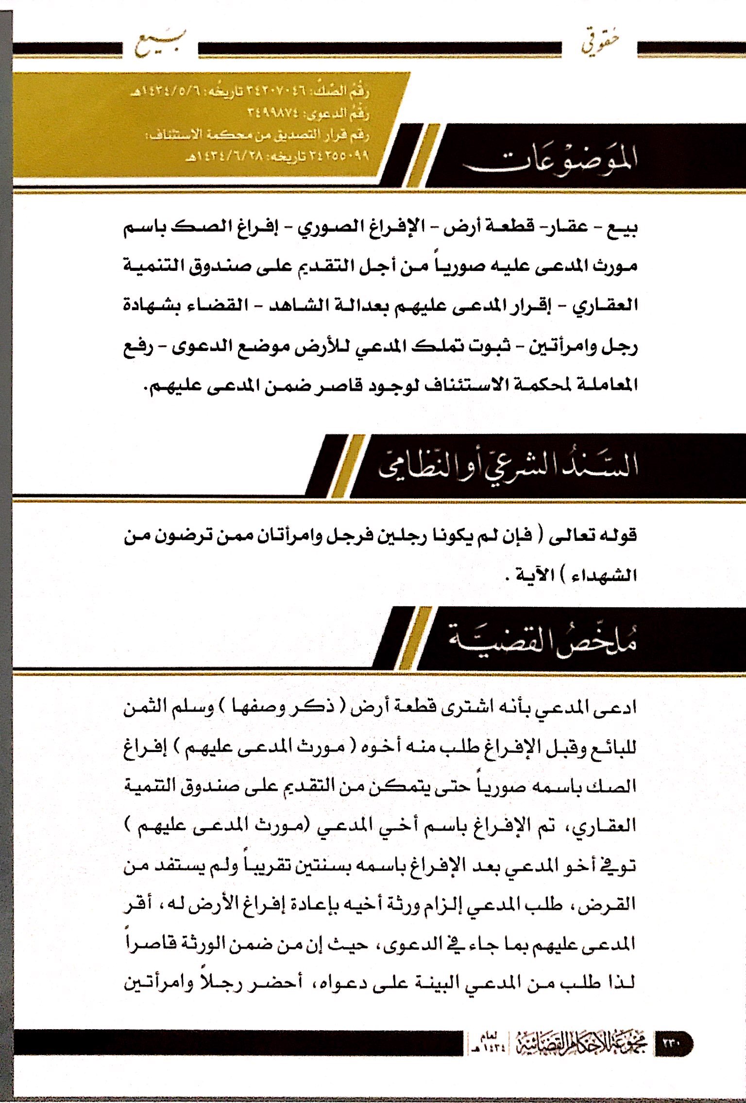 بيع- طلب الإلزام بإفراغ قطعة أرض