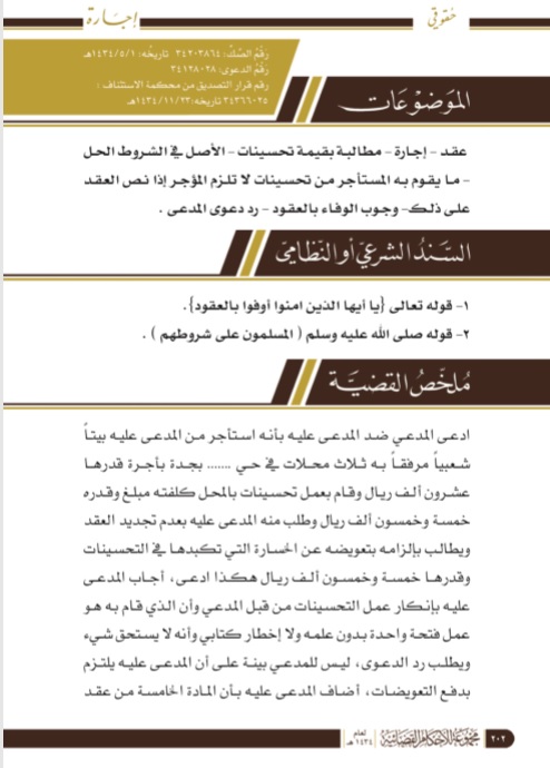إجارة - مطالبة بقيمة تحسينات على عقار