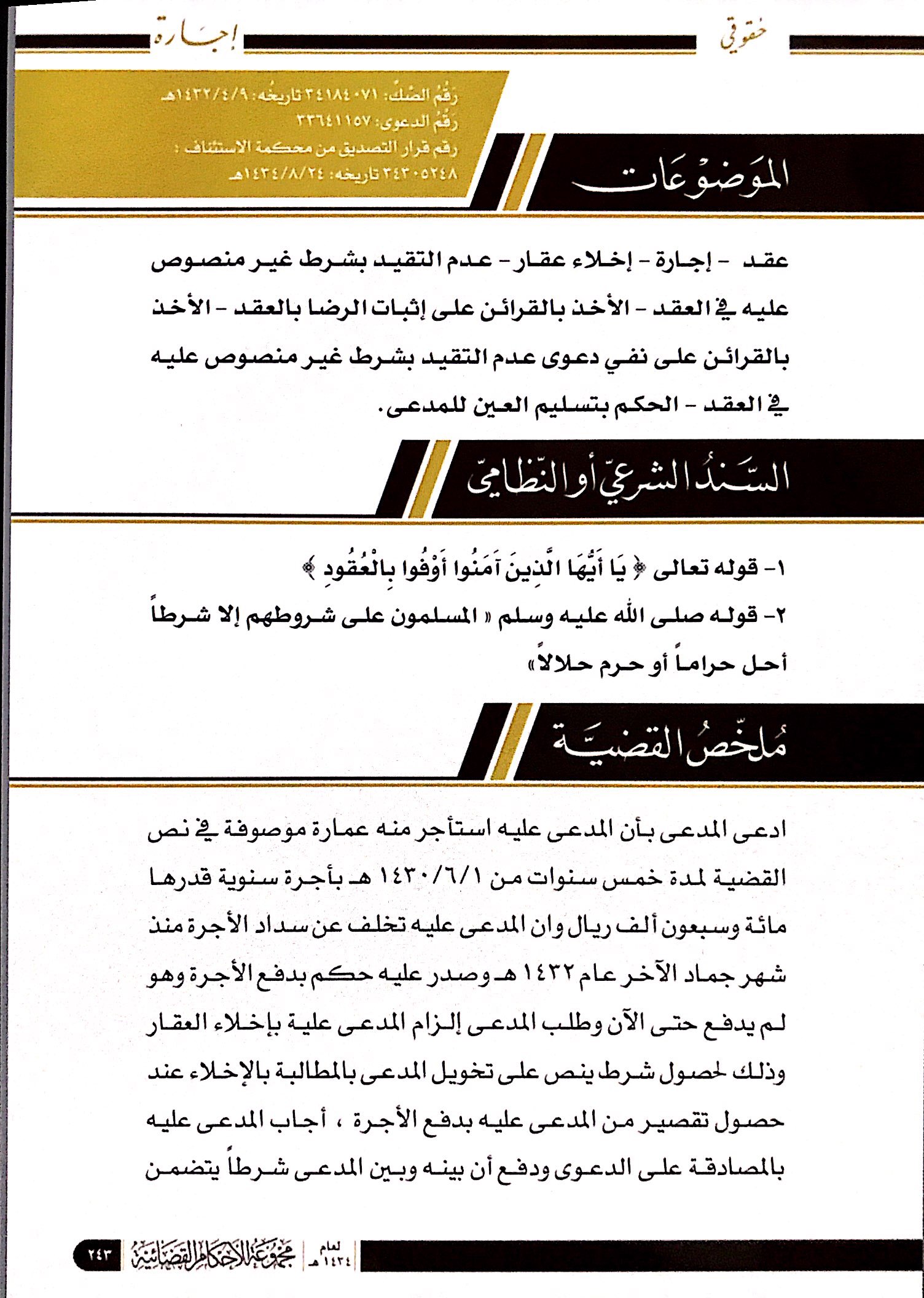 إجارة- عدم التقيد بشرط غير منصوص عليه في العقد