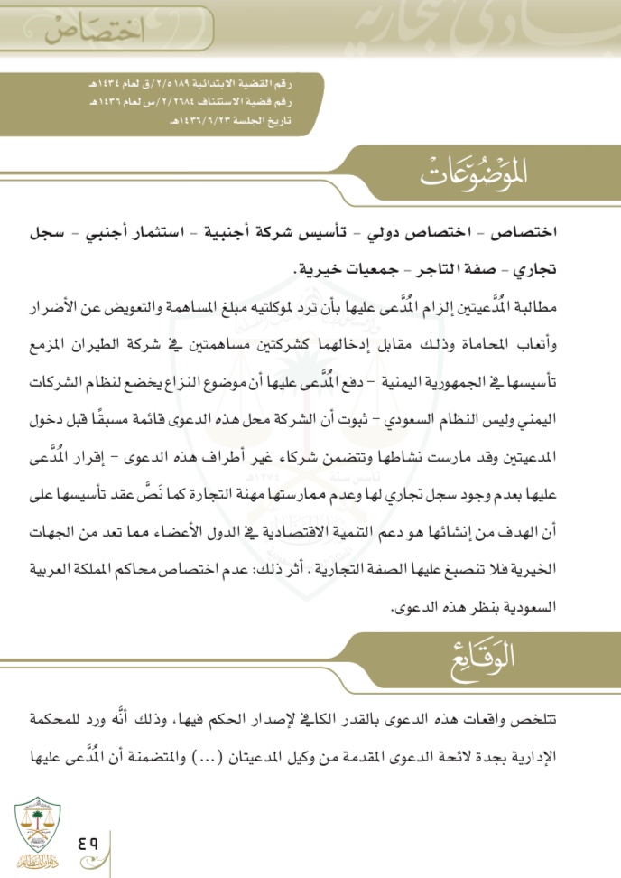 اختصاص , اختصاص دولي ,تأسيس شركة أجنبية
