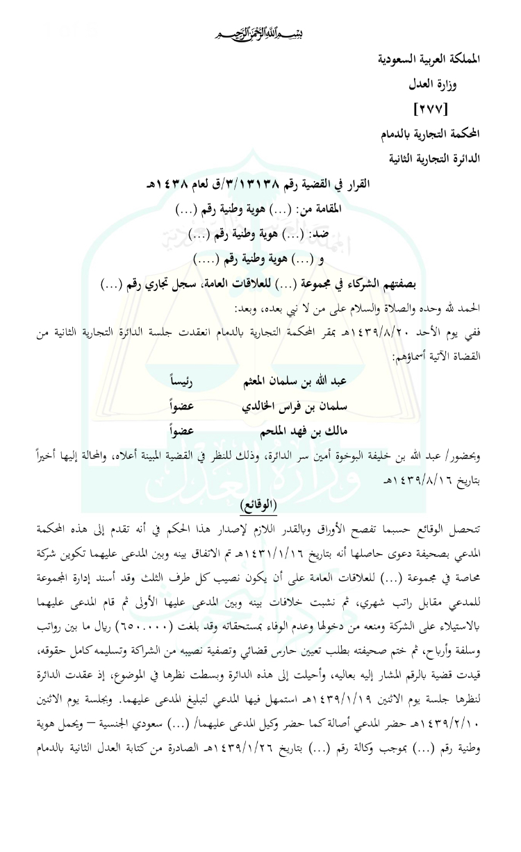 رقم الصك :