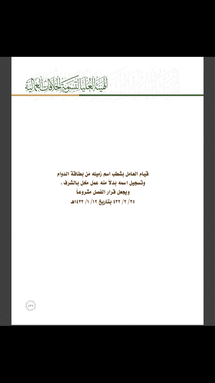 قيام العامل بشطب اسم زميله من بطاقة الدوام وتسجيل اسمه بدلا منه عمل مخل بالشرف ويجعل قرار الفصل مشروعاً
