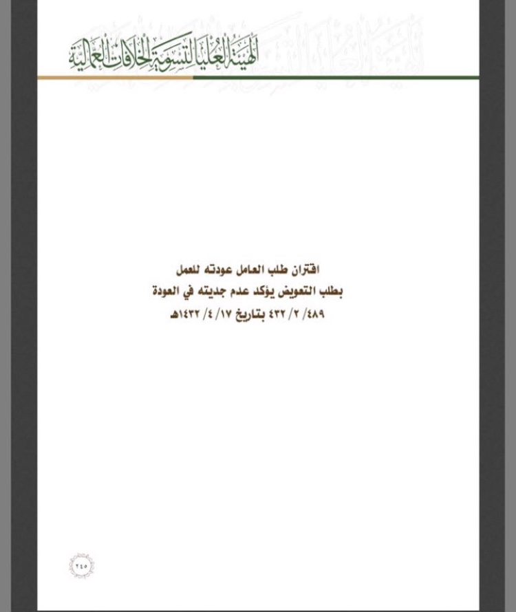 اقتران طلب العامل عودته للعمل بطلب التعويض يؤكد عدم جديته في العودة