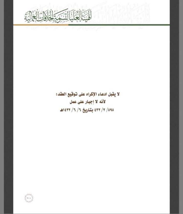 لايقبل ادعاء الإكراه على توقيع العقد؛ لأنه لا إجبار على عمل
