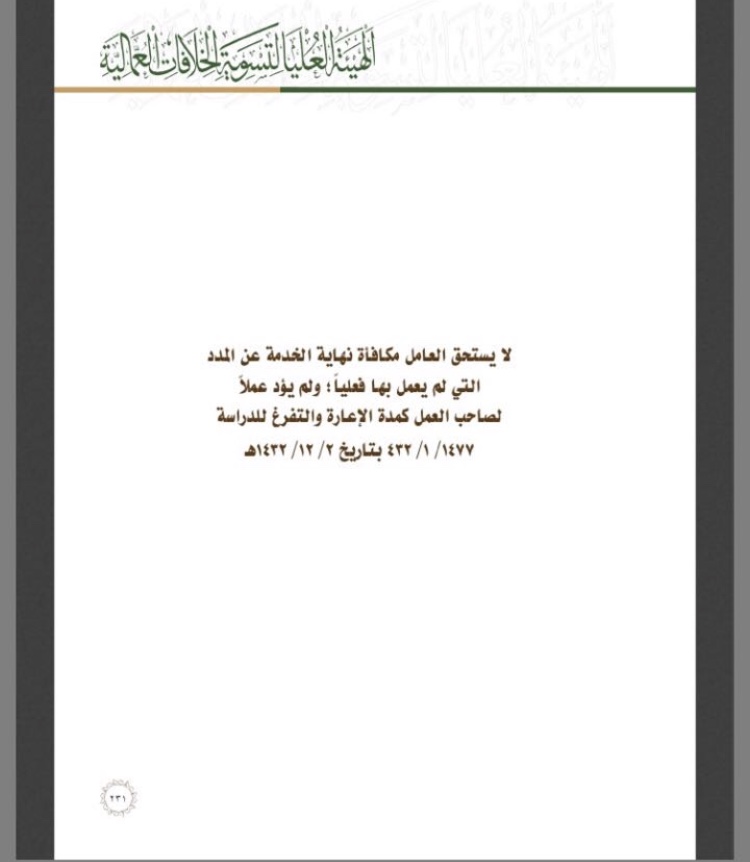لايستحق العامل مكافأة نهاية الخدمةعن المده التي لم يعمل بها فعلياً : ولم يؤد عملاً لصاحب العمل كمدة الإعارة والتفرغ للدراسة