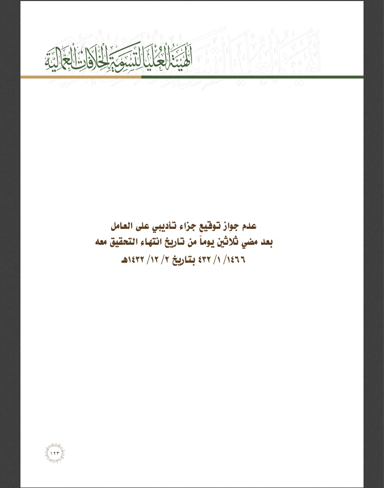 رفض العامل الخضوع للتحقيق معه يعد سبباً مشروعاً لانهاء العقد دون حرمانه من حقوقه النظاميه