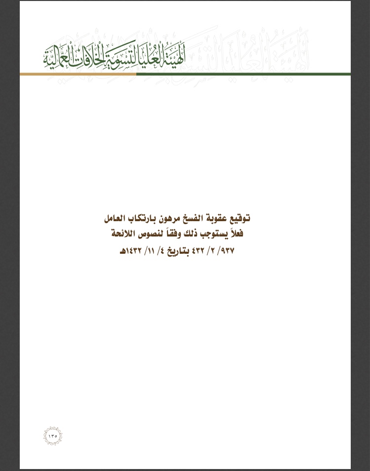 توقيع عقوبة الفسخ مرهون بارتكاب العامل فعلاً يستوجب ذلك وفقاً لنصوص اللائحة