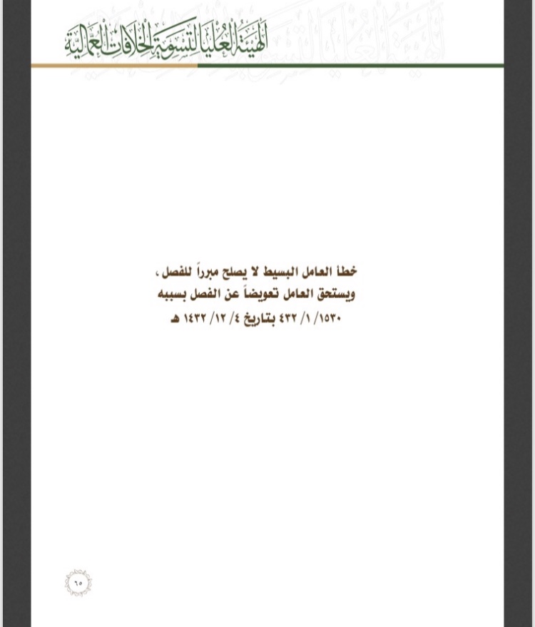 خطأ العامل البسيط لايصلح مبرراً للفصل ، ويستحق العامل تعويضاً عن الفصل بسببه