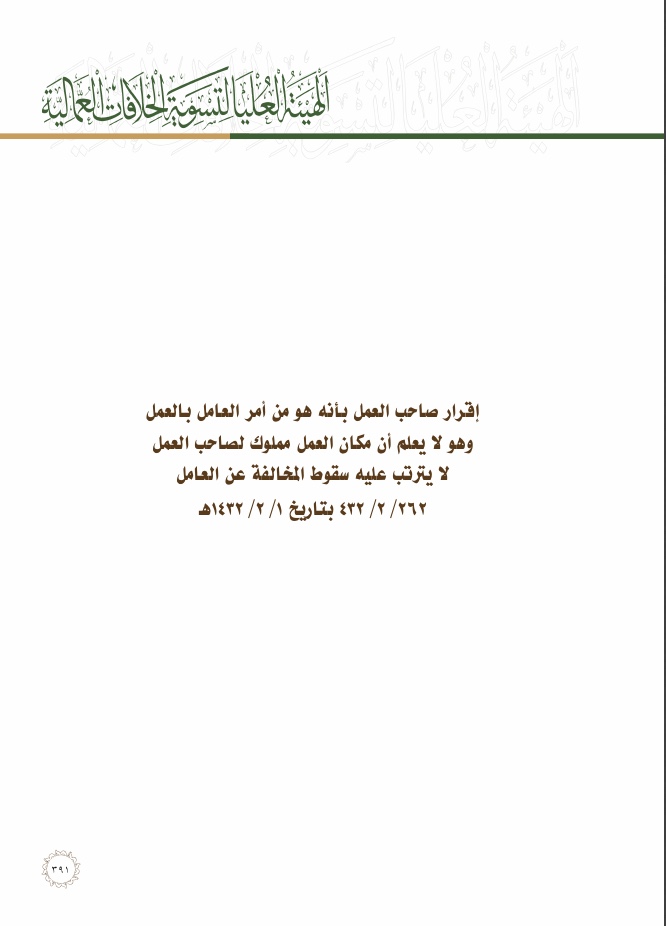 إقرار صاحب العمل بأنه هو من أمر العامل بالعمل وهو لا يعلم أن مكان العمل مملوك لصاحب العمل لايترتب عليه سقوط المخالفة عن العامل