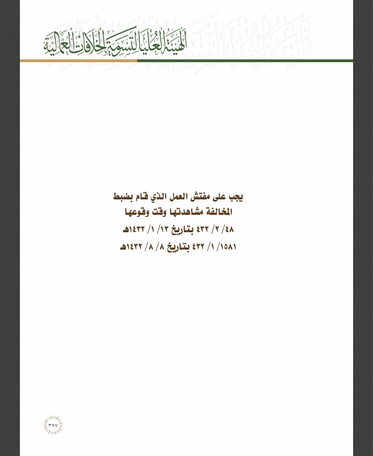 يجب على مفتش العمل الذي قام بضبط المخالفة مشاهدتها وقت وقوعها