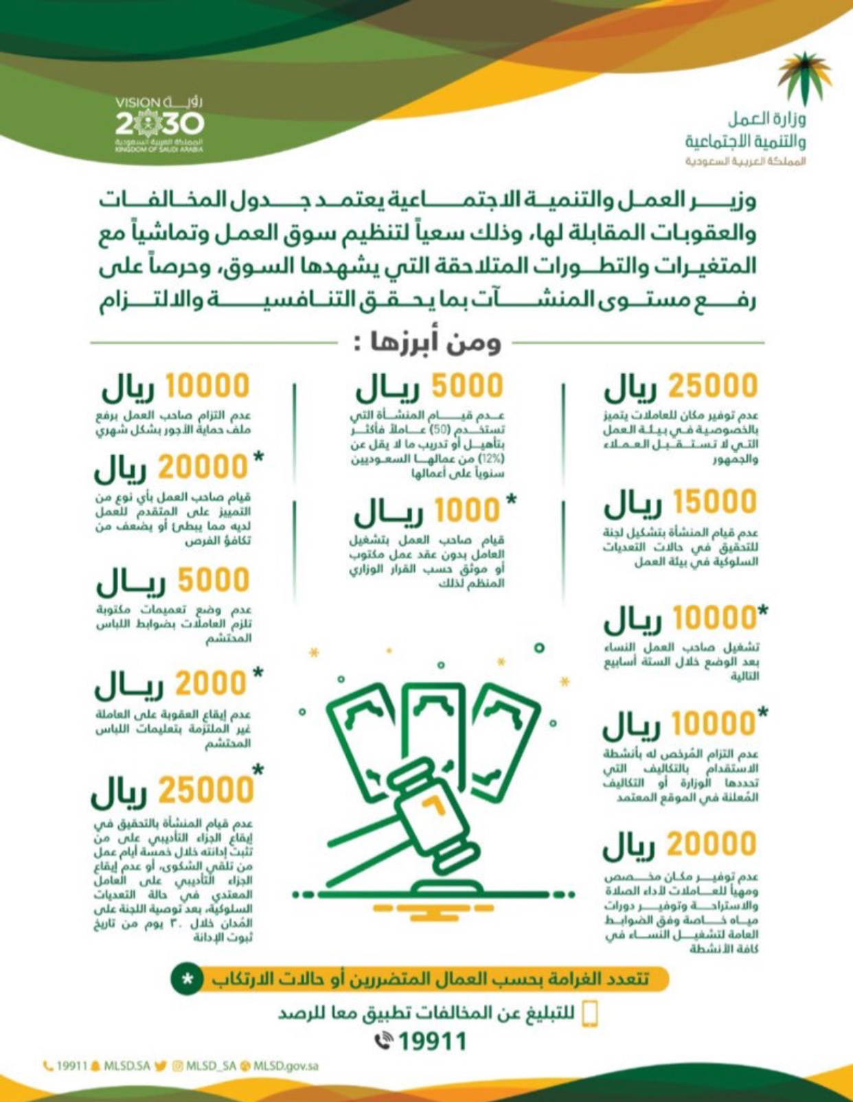 المخالفات والعقوبات المقابلة لها